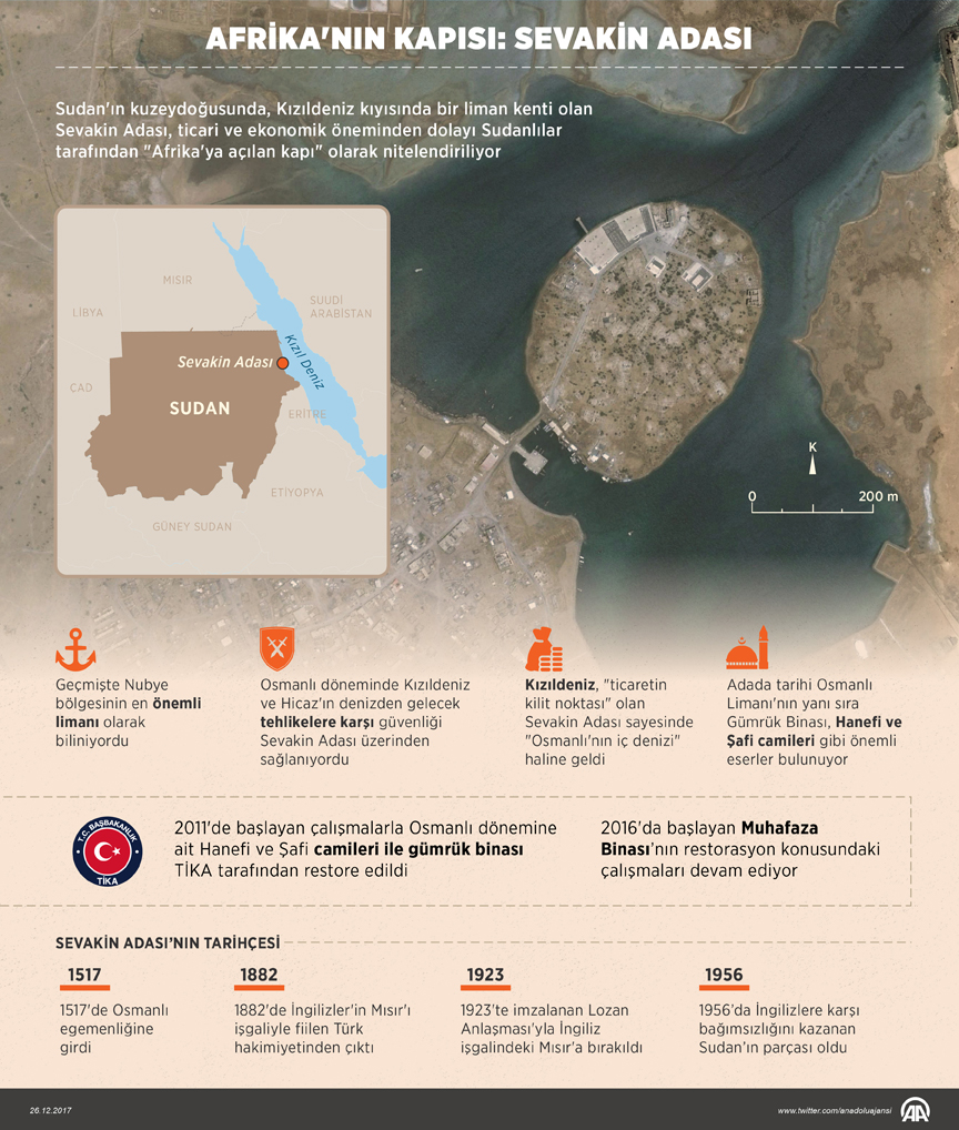 • 19.yüzyıla kadar Osmanlı toprağı olan Sevakin Adası Cumhurbaşkanımız Sayın Recep Tayyip Erdoğan’ın Sudan ziyaretrinde en ilgi çeken duraklarından biri oldu.mız