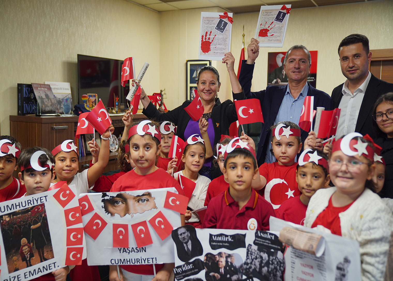 29 Ekim Cumhuriyet Bayramı’na sayılı günler kala, Cumhuriyetin 102. yılı coşkusu Tuzla Belediyesi’nde başladı. Tuzla Belediyesi Akademi Çocuk öğrencileri, ellerindeki “Cumhuriyet ilan edildi” pankartlarıyla belediye binasını ziyaret ederek, tüm müdürlüklerde bayram sevincini paylaştı.