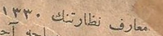 Bu sesi de yöresinde yaşamayanlar çıkaramıyorlar. Buradaki örnekte durum açık. Günümüz alfabesi ile yazımı: Ma’ârif nezaretinin 1330” şeklindedir. Dikkat edilirse “Nezâretinin kelimesi” 2. kelimedir. Son harfi de “ڭ”dir. ” ن” değildir.
