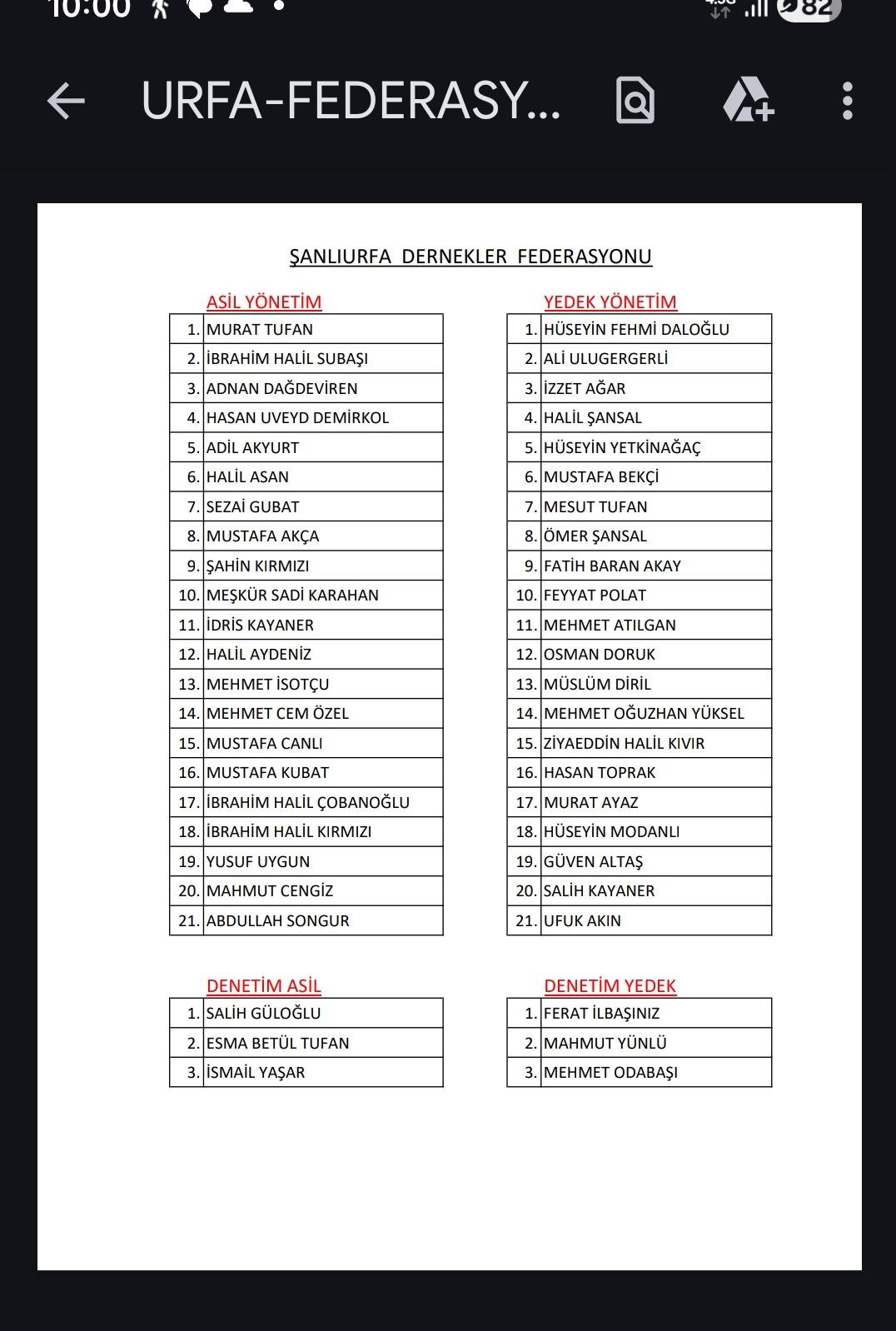 Şanlıurfa İş İnsanları Federasyonu Başkanı Şahin Kırmızı, Ceylanpınar Dernek başkanı İdris kayaner Akçakale Dernek Başkanı Müslüm Etgü, Trakya Dernek Başkanı Sezai Kubat, Suruç Derneği Başkanı İbrahim Halil Subaşı, Avrupa yakası Şanlıurfa Derneği Başkanı Hüseyin Akbulut, Zeytinburnu Şanlıurfalılar Derneği Başkanı Murat Tufan, Beylikdüzü Şanlıurfalılar Dernek Başkanı İzzet Kaya Bahçelievler Şanlıurfalılar Dernek Başkanı Mehmet Kırcı, Genel Kurulu yönetmek için oluşturulacak Divan heyetine, Dernek Başkanlarının yazılı talebi ile Başkanlığa İbrahim Biter ve yardımcılıklarına Cuma Özcan ve Sıtkı Aloğlu seçildiler.