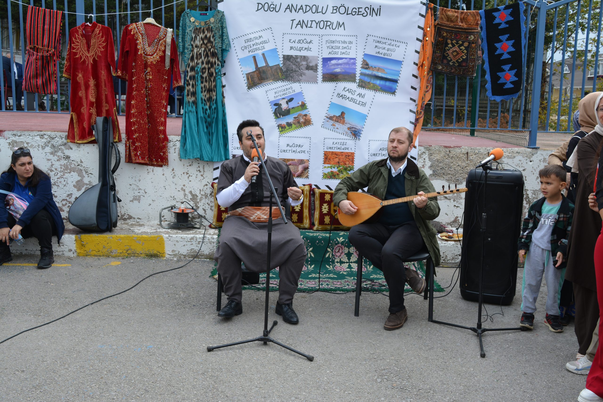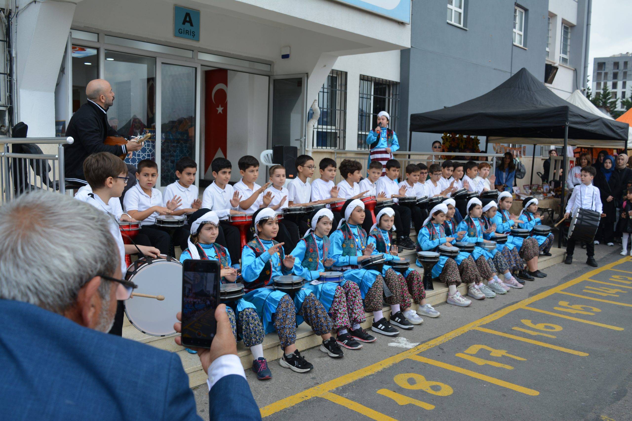 Minik öğrencilerin yöresel gösterileri, müzik öğretmenlerinin eşliğinde seslendirilen halk müziği ezgileri ve milli çalgımız bağlama ile renklenen etkinlik, okul bahçesini neşe dolu bir atmosfere dönüştürdü.