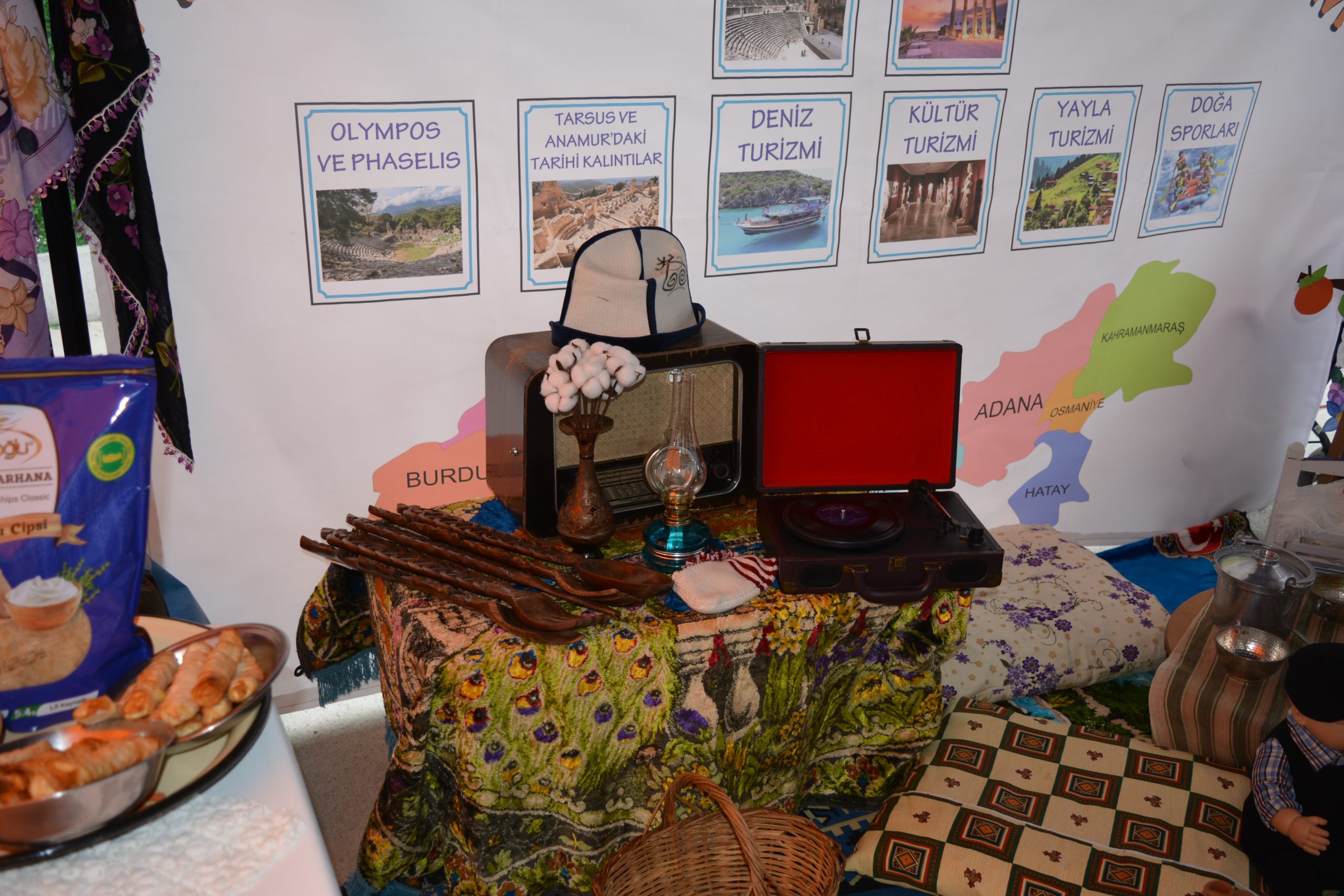Okul Müdürü Serhat Yener öncülüğünde, Okul Aile Birliği Başkanı Selen Dinç Telli ve okul aile birliği üyelerinin büyük özveriyle hazırladığı etkinlikte, “Şirin Anadolumuzun” farklı yörelerine ait motiflerle süslenmiş geleneksel kıyafetler sergilendi. Anadolu mutfağının birbirinden lezzetli tatlarıyla dolu stantlar, misafirlere adeta bir kültür şöleni yaşattı.