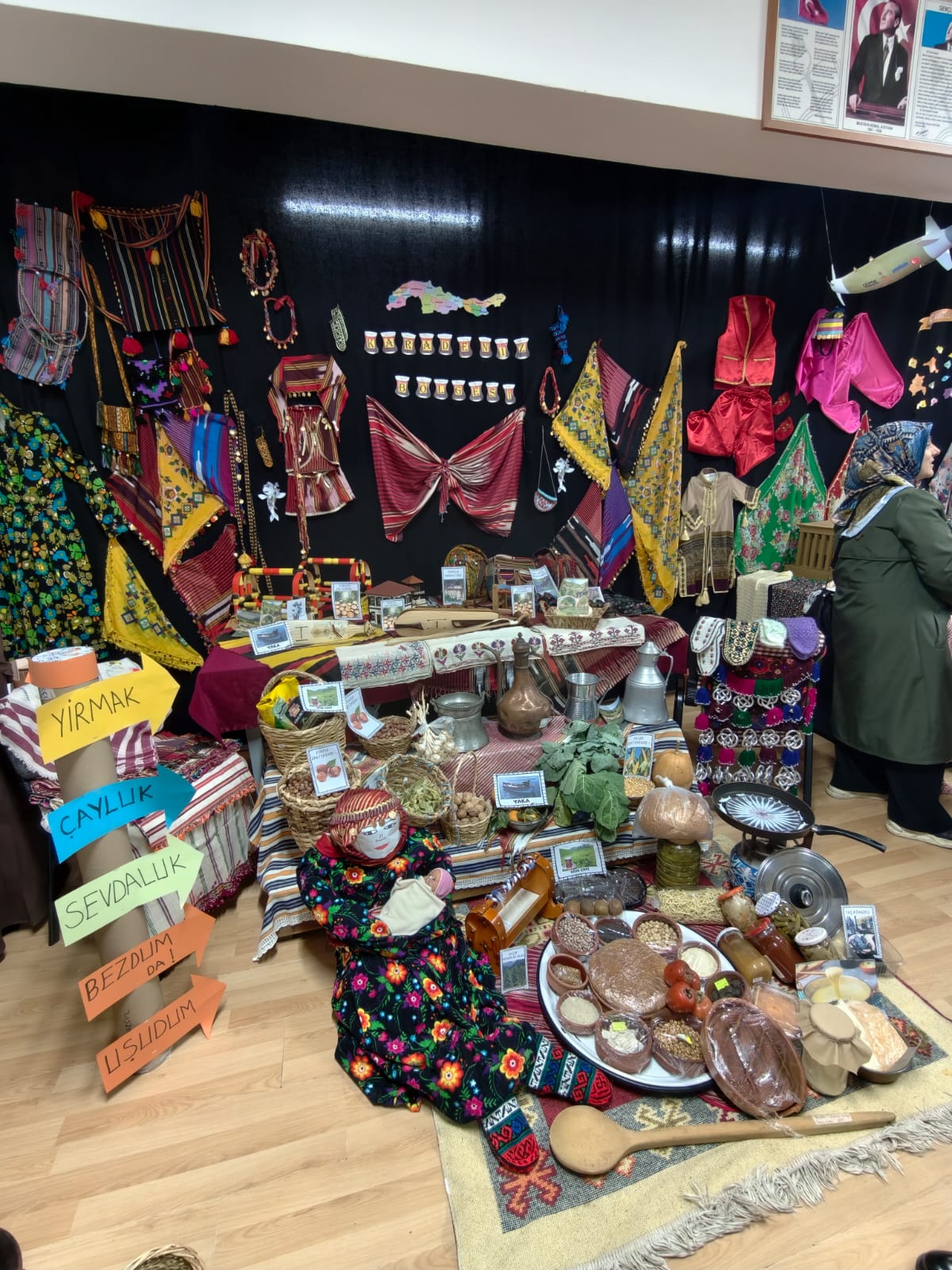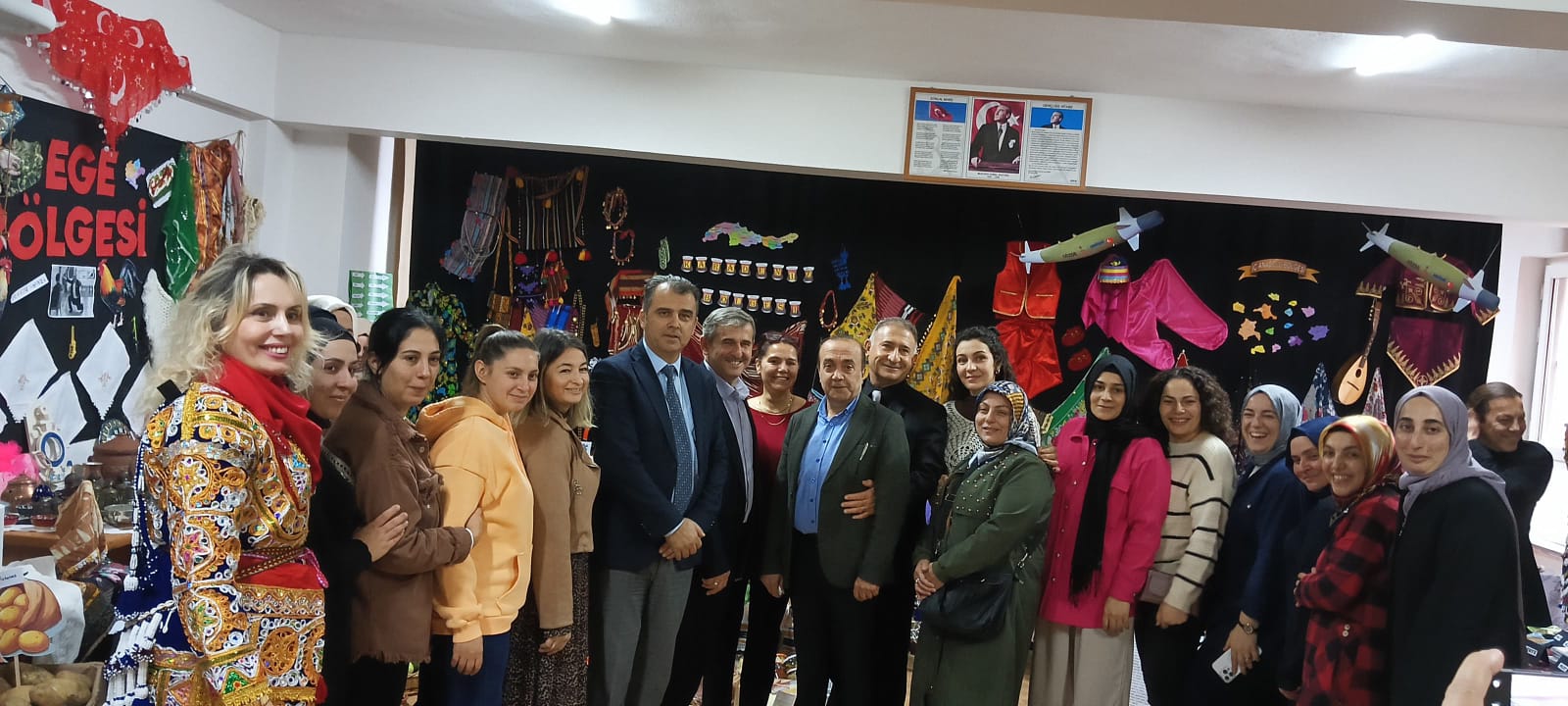 Okul Müdürü Yücel Aydın; “Bu anlamlı ve özel etkinliğimize gösterdiğiniz büyük ilgi bizleri ziyadesiyle mutlu etti. Bu etkinliğimize emeği geçen tüm arkadaşlarıma huzurlarınızda bir kez daha teşekkür ediyorum. Bu anlamlı etkinliğimize değerli zamanınızı ayırıp bizleri yalnız bırakmadığınız için sergimize emeği geçen velilerimiz adına sizlere de çok teşekkür ediyor, sizleri en kalbi duygularımla selamlıyorum. Öğrencilerimizin ve öğretmenlerimizin büyük bir heyecanla hazırladığı bu kültürel mozaik, yalnızca bölgelerimizin lezzetlerini değil; tarihini, sanatını ve benzersiz el sanatlarını da bir araya getirdi. Sizin takdir dolu varlığınız, bu emeğin ne kadar değerli olduğunu bizlere bir kez daha kanıtladı. Eğitimciler olarak, kültürel mirasımızı koruma ve gelecek nesillere aktarma misyonumuzda attığımız bu güçlü adımda yanımızda olduğunuz için sizlere teşekkür ediyorum. Kurumlarımız arasındaki bu güçlü iş birliği ve dayanışma ruhu, başarılarımızın temelini oluşturmaktadır. Katılımınızla etkinliğimize kattığınız değer için tekrar teşekkür eder, yeni projelerde tekrar bir araya gelmeyi diler, hepinize sevgi ve saygılarımı sunarım” dedi.