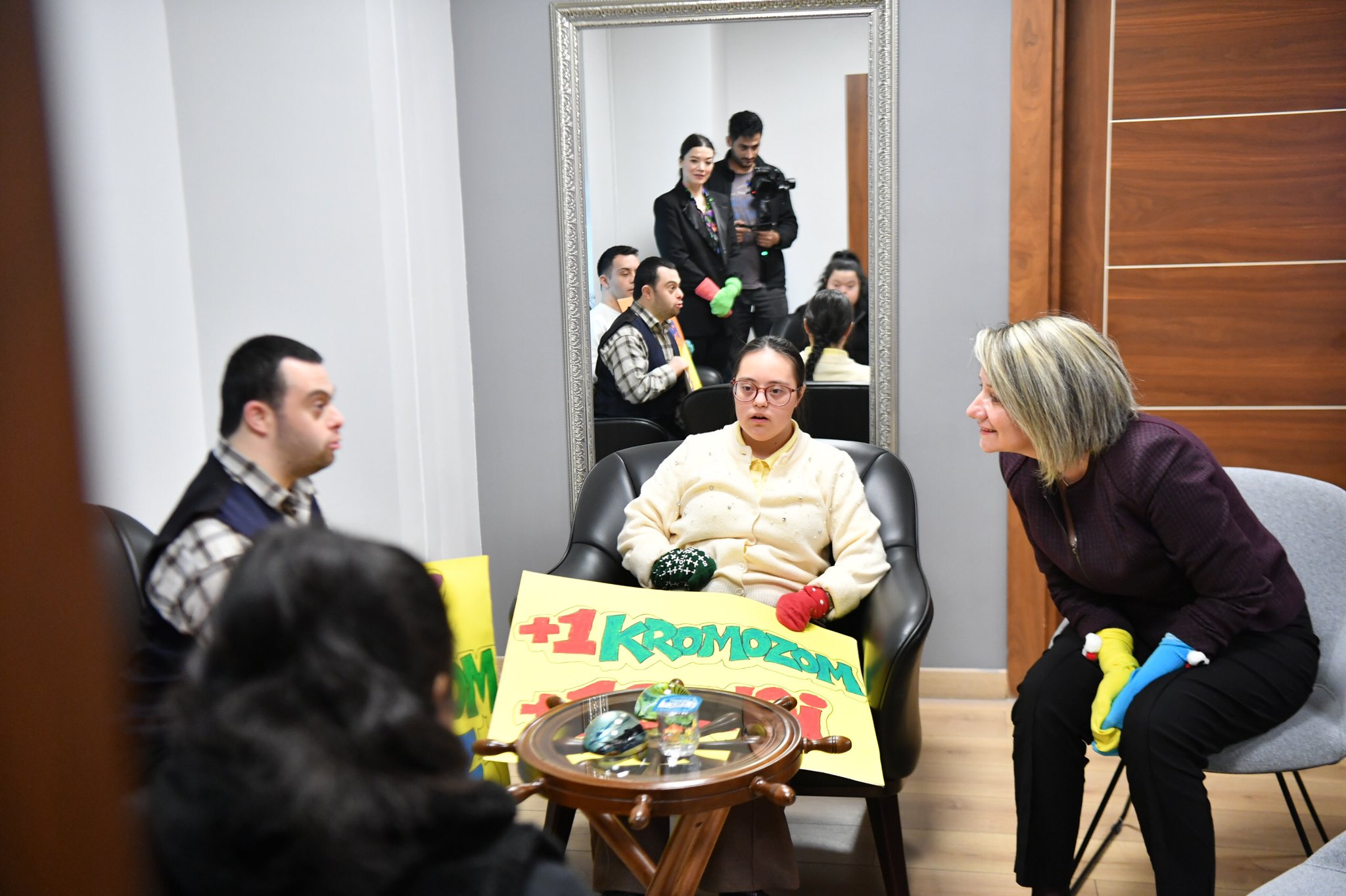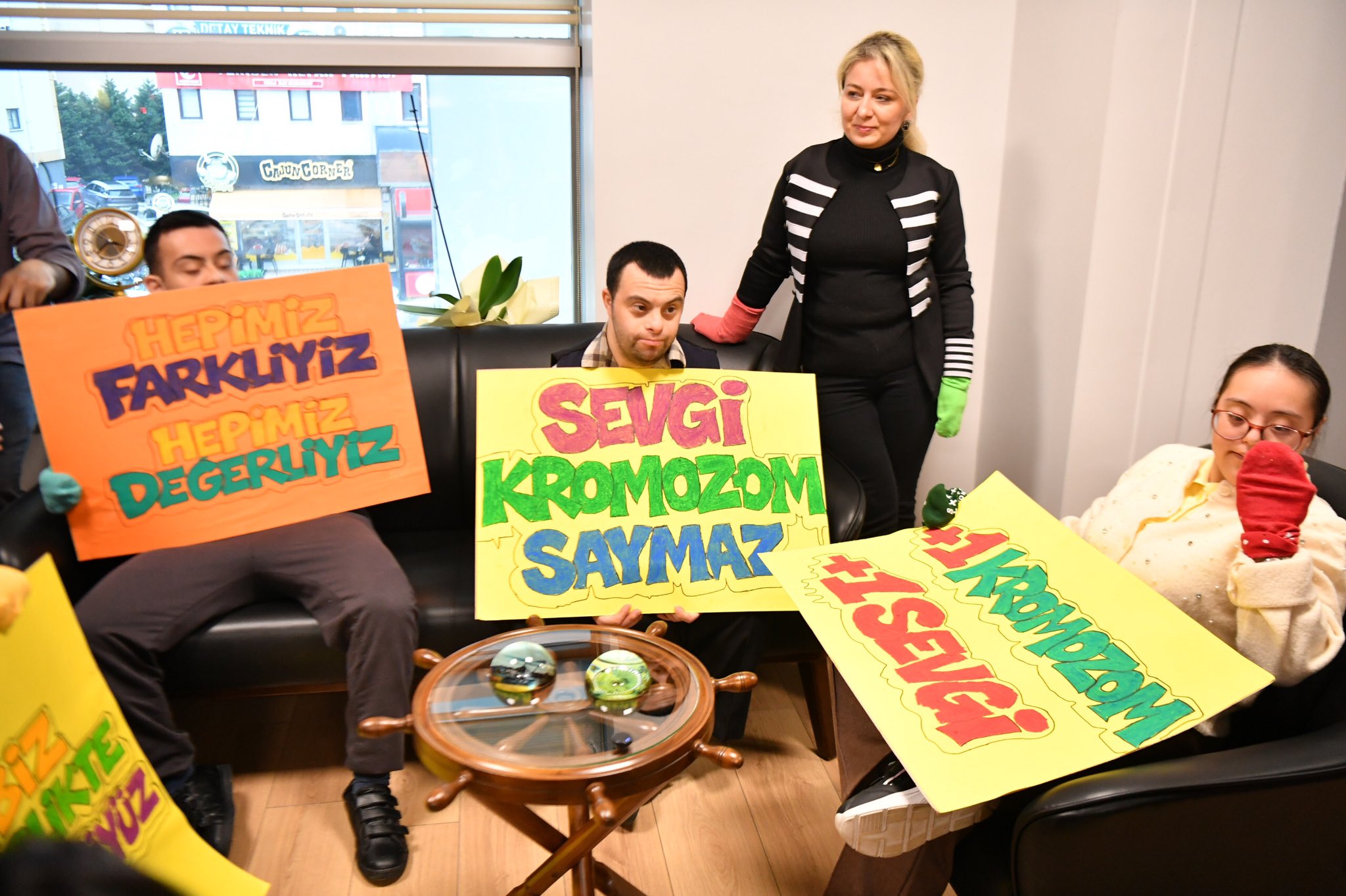 21 Mart Dünya Down Sendromu Farkındalık Günü kapsamında belediyede ağırlanan özel bireyler ellerinde taşıdıkları pankartlarla mesaj verdi. Pankartlarda “Hepimiz farklıyız hepimiz değerliyiz”, “+1 kromozom, +1 sevgi”, “Sevgi kromozom saymaz” ve “Biz birlikte güçlüyüz” yazıları dikkat çekti.