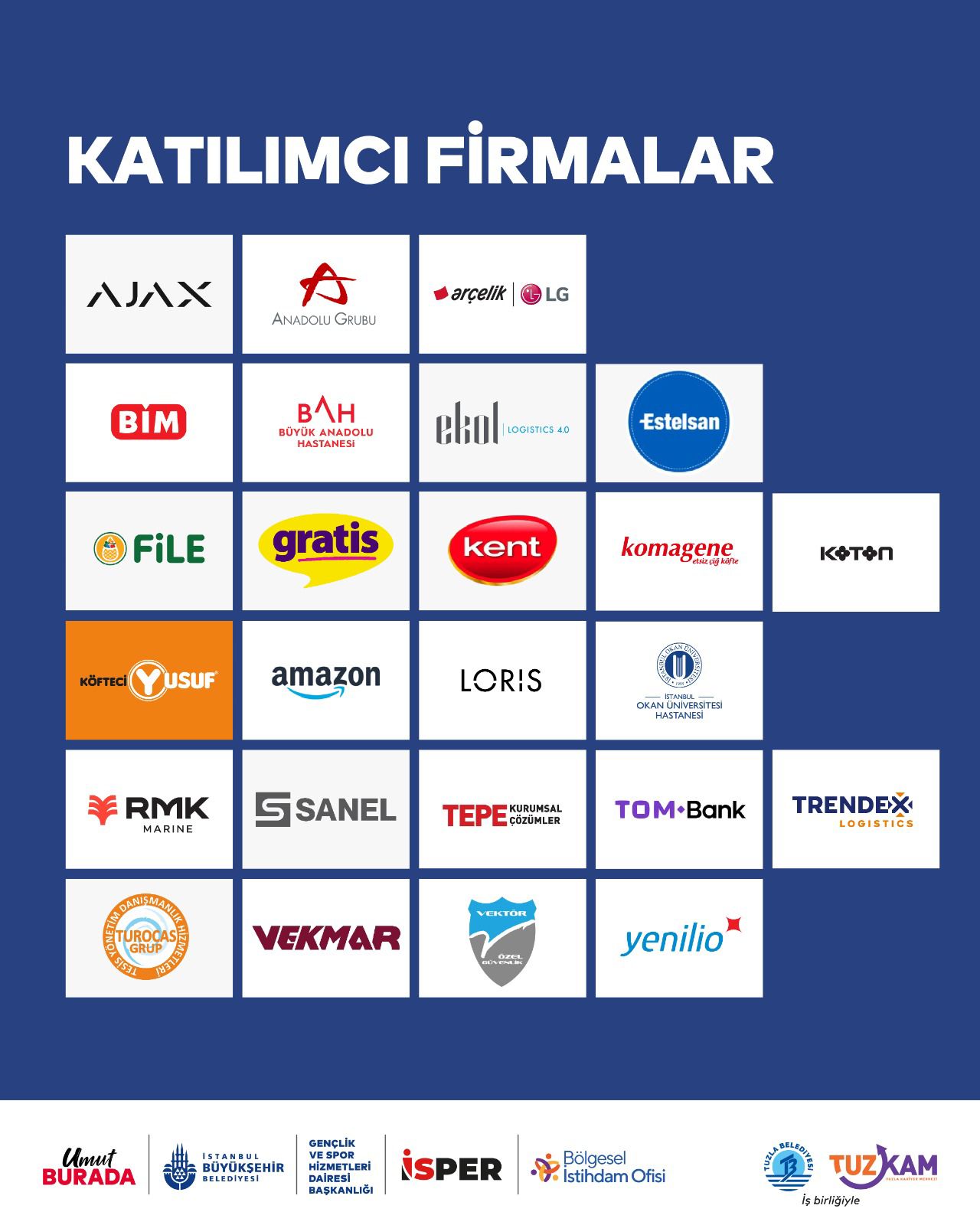 Bu yıl fuarda 26 firma, 400’e yakın iş gücü talebini duyuracak. Perakende, lojistik, üretim, teknoloji, güvenlik ve sağlık sektörlerinin önde gelen şirketleri fuarda geniş bir istihdam yelpazesi sunacak. Bim, Koton, Gratis, Amazon Turkey, RMK Marine, Arçelik LG, Ajax Turkey, Kent Gıda ve birçok önemli firma fuar süresince yüzlerce pozisyon için başvuru alacak.